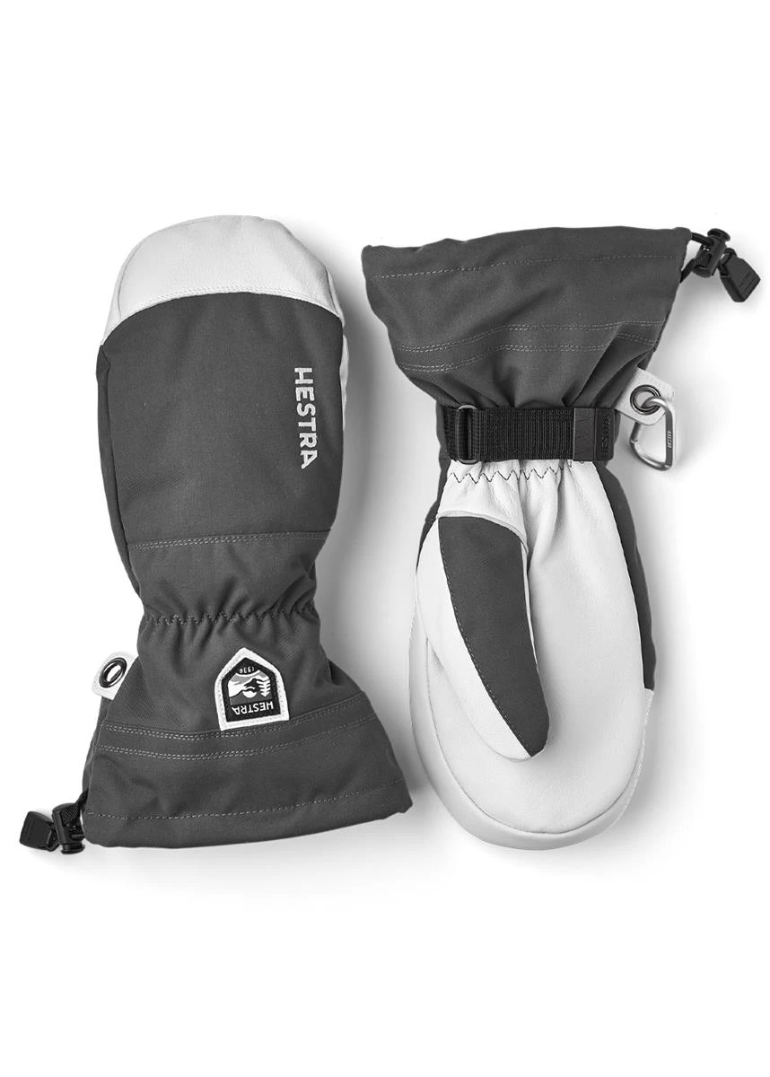 The Men’s Army Leather Heli Ski Mitt from Hestra is made with durable synthetic exterior materials, ultra-warm polyester lining and army leather on the palms for exceptional grip. These mitts are specially designed and crafted to keep your hands warm, even in the wettest and most frigid winter conditions. They are perfect for heavy-duty use in active outdoor lifestyles.