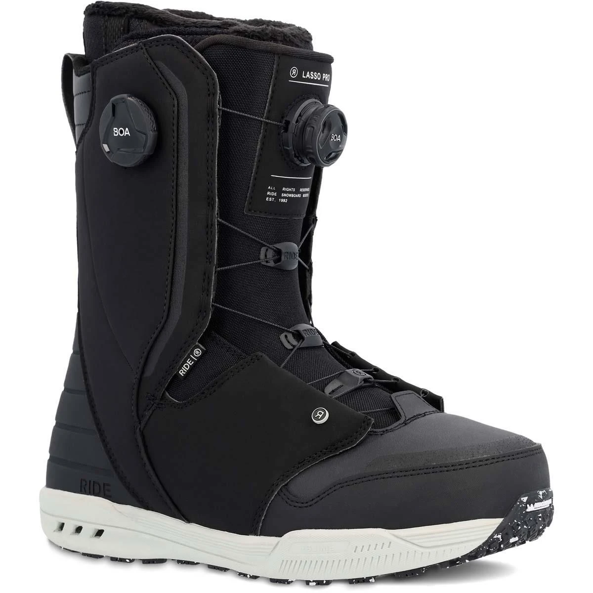 The Lasso Pro is fitted with Intuition™ Trap Wrap Liner and Tongue Tied™ Hybrid Harness system to evenly distributes pressure throughout the inner of the boot while locking in your foot. The H4 BOA® Coiler provides a uniform fit while our Michelin® Fiberlite Sole combines rubber with a +Slime Midsole for traction and cushioning. The Lasso Pro is a stiffer flexing boot that offers a responsive ride with a hassle-free fit system that also comes in a wide option and it’s catered to riders looking for all-mountain hold, response and durability in any and all conditions.