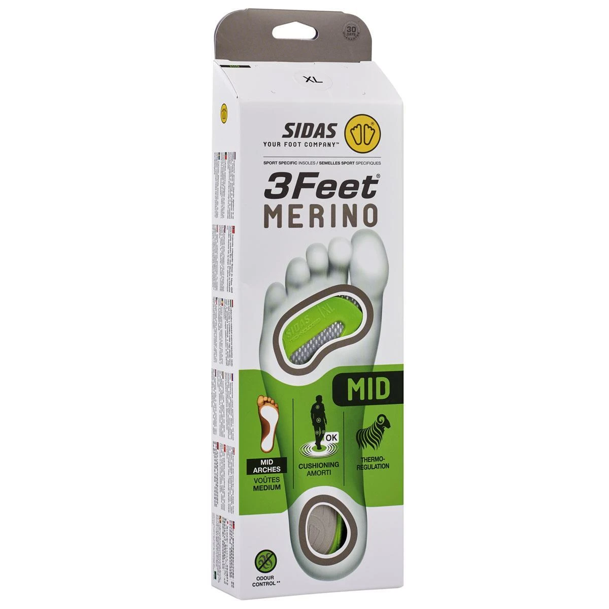 Anatomical insoles adapted mid-arched foot. Ideal hybrid top cover : synthetics fibers (40%) will guarantee resistance and durability, the merino wool (60%) will reduce odor and assure an optimal thermoregulation.